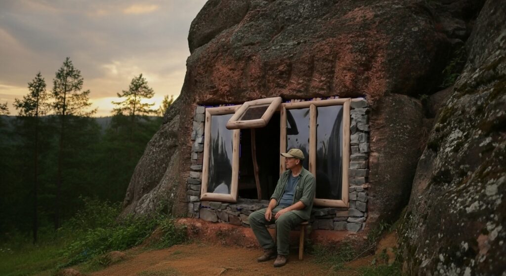 Beginning with careful site selection, I chose a spot shielded by thick trees and natural cover, which would help hide the structure and buffer against wind and rain. I started digging and clearing the area, working slowly and deliberately to create a stable foundation beneath the forest canopy.