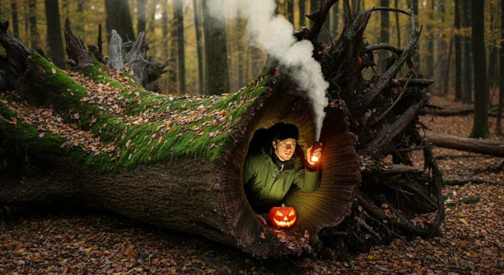 I carefully cleared and prepared the hollow inside the root, working with natural materials like moss, sticks, and leaves to make it comfortable and insulated. Using my bushcraft skills, I reinforced the shelter while maintaining its integration with the forest surroundings. This took patience and finesse to create a sturdy, weather-resistant space without disrupting the natural environment.