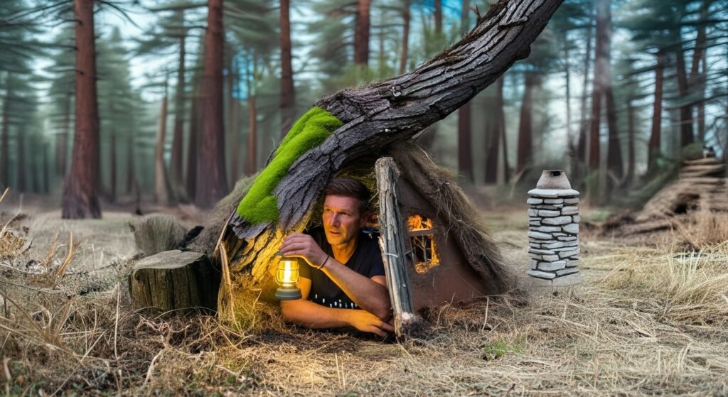 I take on the fascinating challenge of building a cozy dugout shelter right under the trunk of a large, old tree. The location offers natural shelter and protection, so I focus on enhancing it into a warm and livable space. The project is all about blending with nature, using primitive bushcraft skills combined with careful planning to create a resilient home in the forest.