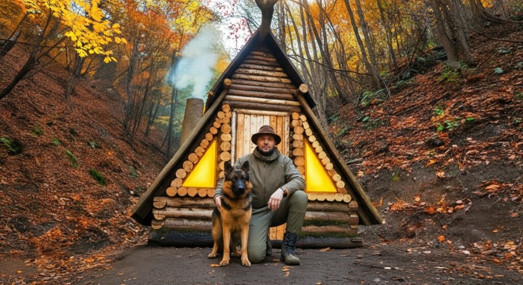 Using simple hand tools and locally sourced wood, I carefully construct the cabin step by step. Each log and beam is selected and placed with care, reflecting traditional building methods and a deep respect for the forest environment. Rex stays close throughout, providing companionship and comfort as we work together in this quiet wilderness.