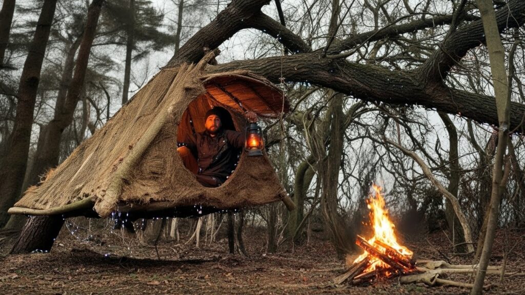 The build begins with choosing the right tree and crafting a solid base using strong branches and vines for suspension. I reinforce the structure meticulously, weaving and lashing materials to ensure it can withstand wind, rain, and weight. Every knot and connection is tested for safety, creating a platform that sways gently with the trees yet remains rock-solid.