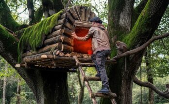 “Logs, rope, and pure wilderness skill—building a floating home above the forest floor. 🌿🛠️ #TreehouseBuild” Read More